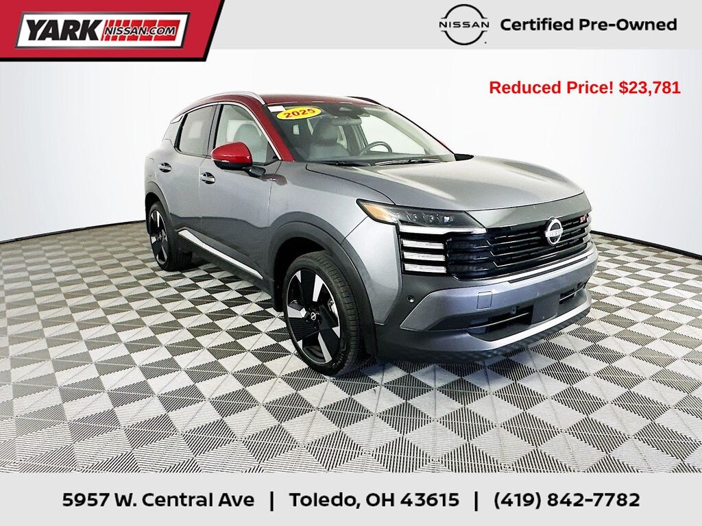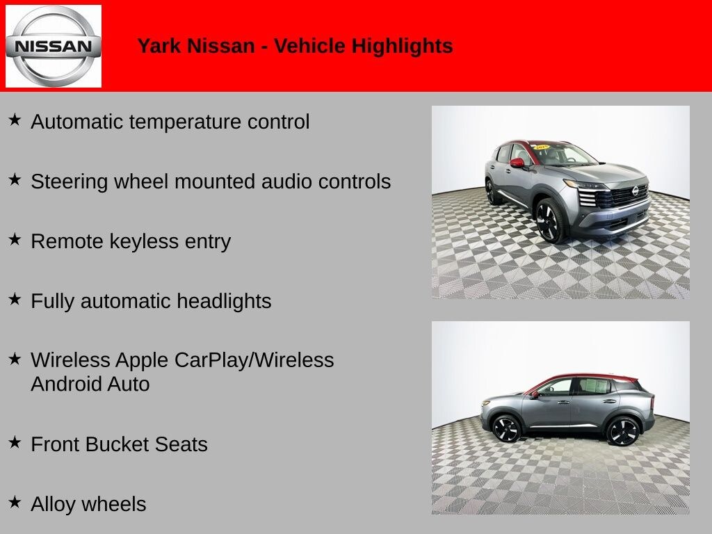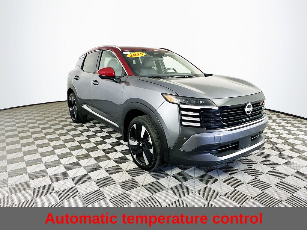 Certified. Recent Arrival! 2025 Gun Metallic/Scarlet Ember Tintcoat Nissan Kicks SR AWD Alloy wheels, Automatic temperature control, Front Bucket Seats, Fully automatic headlights, Remote keyless entry, Steering wheel mounted audio controls, Wireless Apple CarPlay/Wireless Android Auto.