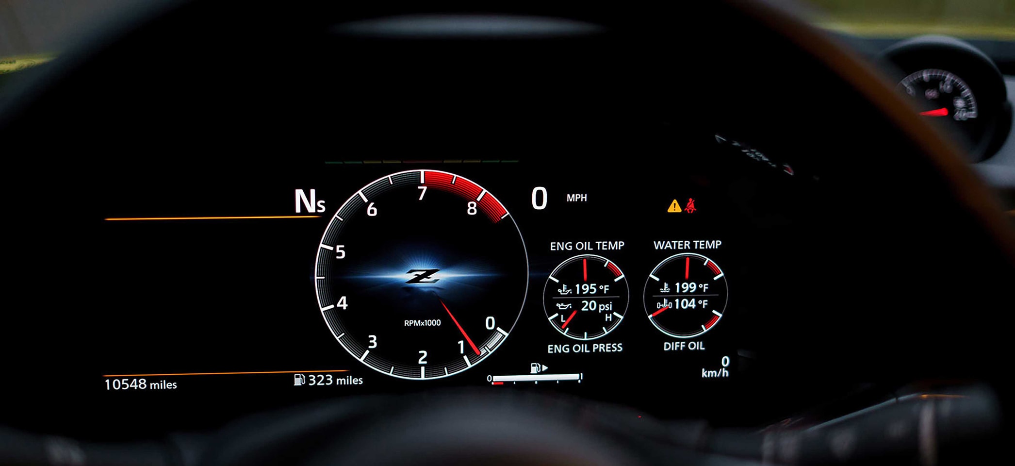The Z's 100.4-inch wheelbase ensures handling and stability. Equipment includes four-wheel disc brakes, ABS, brake assist, hill hold, and a mechanical, limited-slip differential (standard on Performance and NISMO). Wheels range from 18-inch on Sport to 19-inch RAYS® forged alloys on Performance and NISMO.