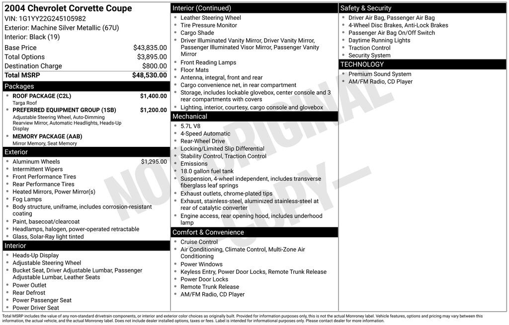 Roof Package, 1-Piece Removable Body-Color Roof Panel, 1-Piece Removable Translucent Roof Panel, Multi-zone Temperature Control, Keyless Entry, Fog Lights, Cruise Control, Heated Mirrors, Leather Seats