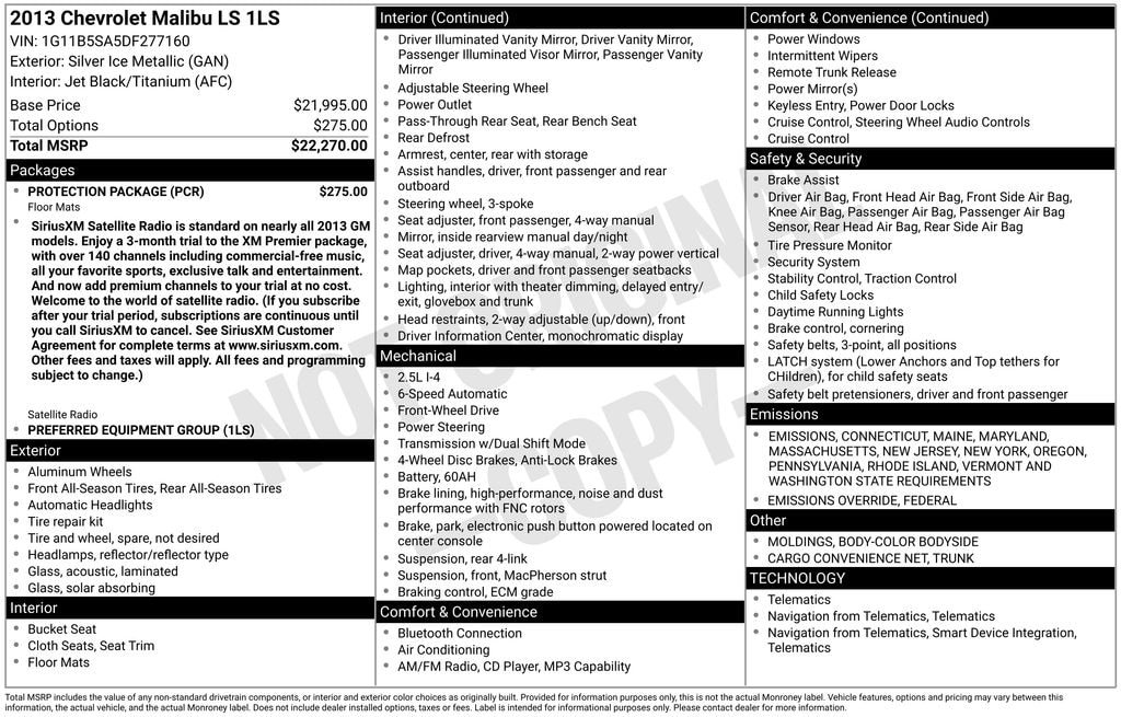 Sirius XM, CD player, Radio: AM/FM Stereo w/CD Player & MP3 Capability