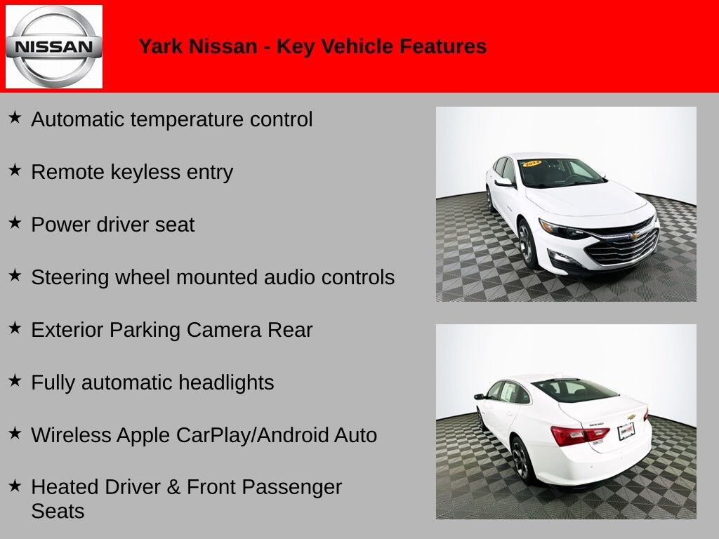 Recent Arrival! 2024 Summit White Chevrolet Malibu LT FWD Automatic temperature control, Exterior Parking Camera Rear, Fully automatic headlights, Heated Driver & Front Passenger Seats, Power driver seat, Remote keyless entry, Steering wheel mounted audio controls, Wireless Apple CarPlay/Android Auto.