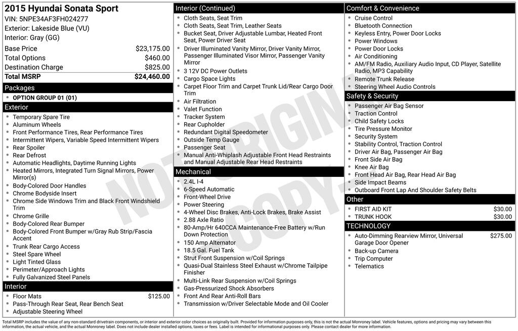 *The advertised price does not include sales tax, vehicle registration fees, other fees required by law, finance charges and any documentation charges ($387.00).