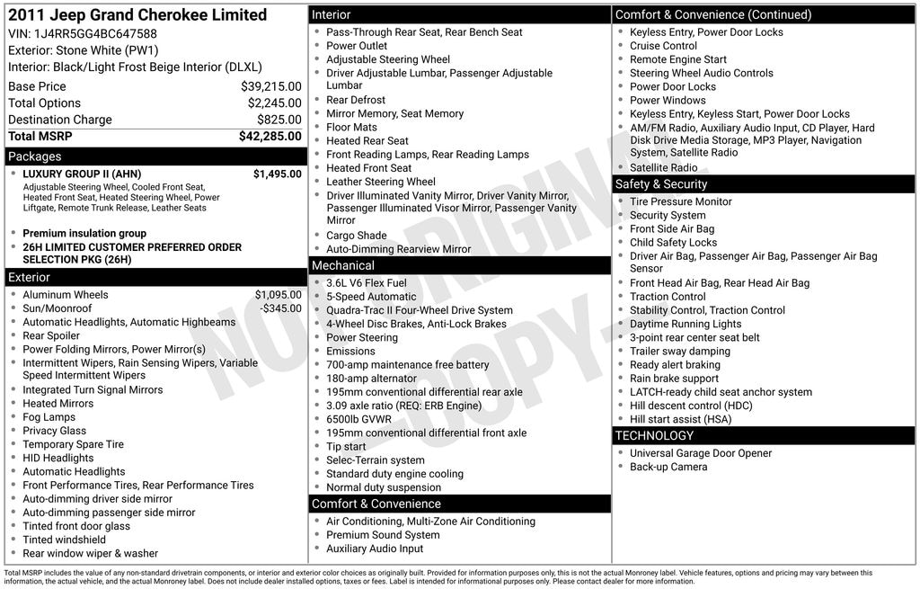 Traction control, Back-up Camera, Rear Parking Sensors, Security System