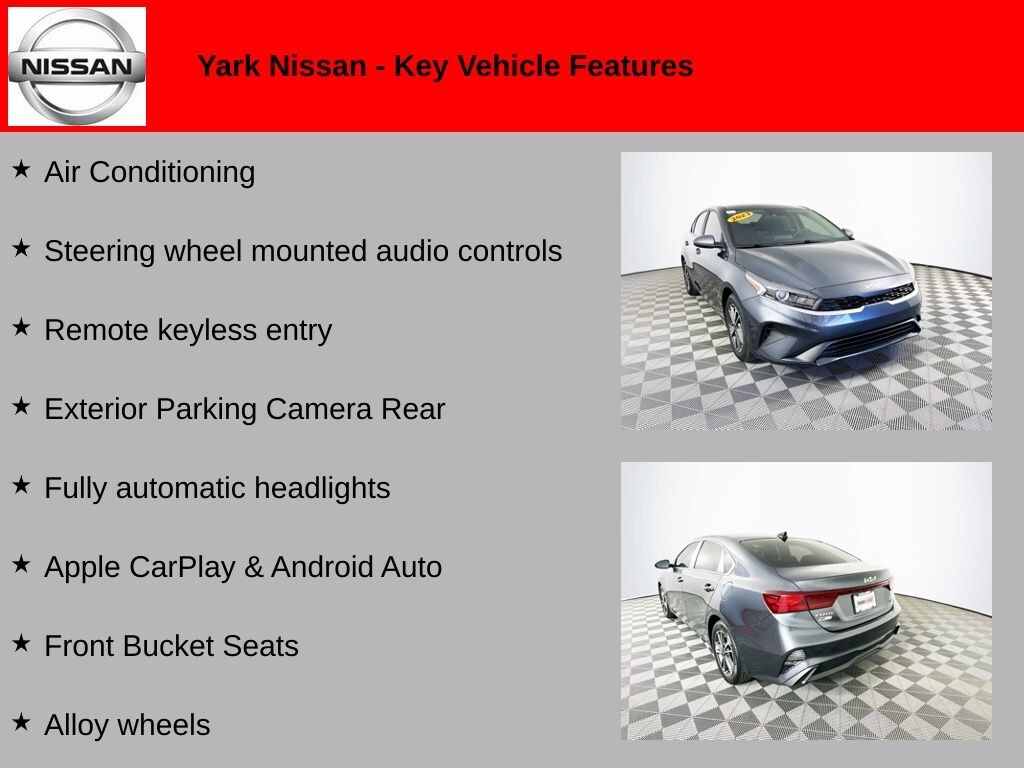 Recent Arrival! 2023 Gravity Gray Kia Forte LXS FWD Air Conditioning, Alloy wheels, Apple CarPlay & Android Auto, Exterior Parking Camera Rear, Front Bucket Seats, Fully automatic headlights, Remote keyless entry, Steering wheel mounted audio controls.