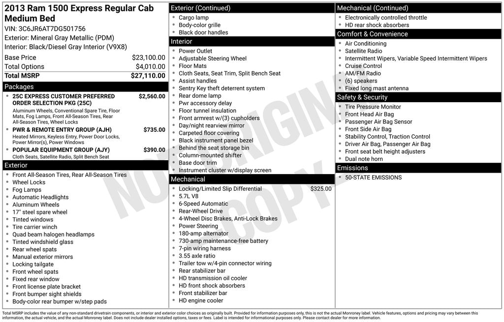 Popular Equipment Group, Power & Remote Entry Group, Quick Order Package 25C Ram 1500 Express